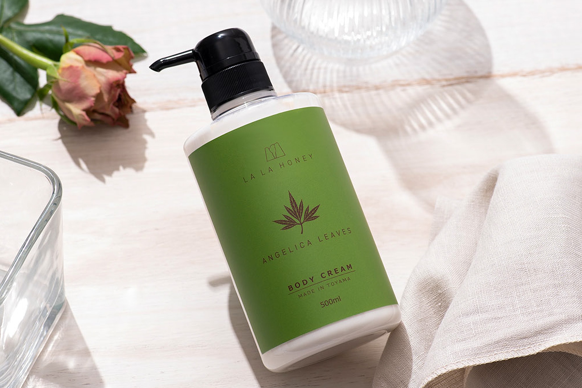 富山県産の和漢植物エキス、トウキ葉エキスをはじめ、酒粕エキス、セラミドなど、ララハニーこだわりの保湿成分と整肌成分を贅沢に配合したリッチなボディクリームです。
